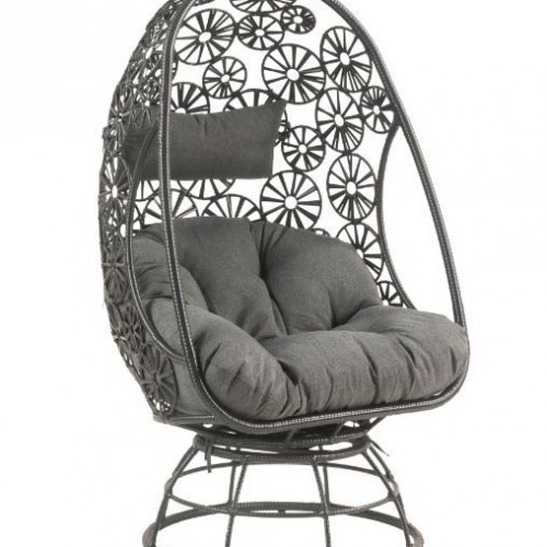Hikre – Patio Lounge Chair & Side Table – Clear Glass, Charcoal Fabric & Black Wicker