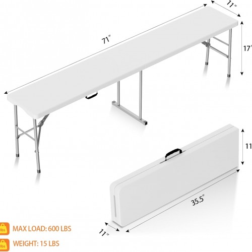 HLPB Folding Bench 6 ft, Foldable Plastic Bench with Handle and Smooth HDPE Tabletop, Protable in/Outdoor Picnic Party Camping Dining Seat, 2 Pack, White