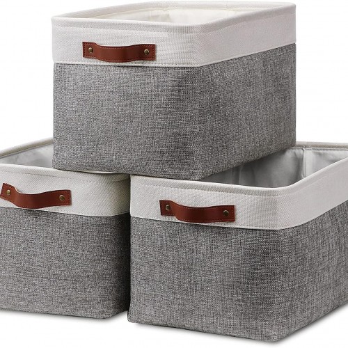 - 【Sturdy Leather Handles】 The clothes basket comes with 2 sturdy leather handles for easy access and for portability. Sturdy leather handles that add a classic touch. Strong rivets and handles, make these fabric storage baskets are sturdy and easy to grab and make them easy to carry or pull off and out of shelves