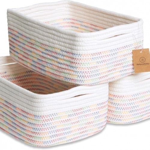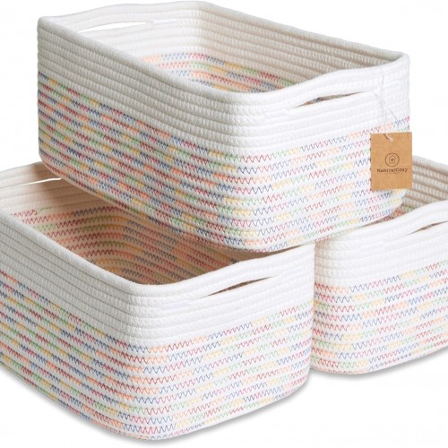 HNZIGE Large Storage Baskets (3 Pack) – Fabric Bins with Leather Handles, Foldable for Organizing Clothes, Toys (Black & White, 15″ x 11″ x 9.5″)