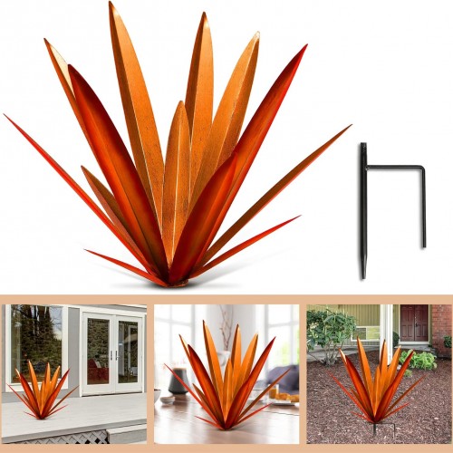 - [Simple assembly]Easy to assemble rust Metal Tequila Agave Plant features rustic yard decor, just place it wherever you want, perfect for decorating gardens, courtyards, ponds, terraces and lawns. It can be placed on the ground, on the terrace, as a decorative pot – outdoor and indoor.