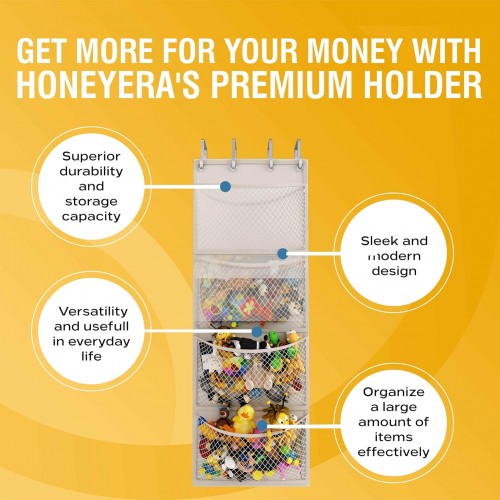 - 🧸 CONVENIENT STUFFED ANIMAL STORAGE – The perfect stuffed animal organizer to easily store and organize your favorite toys in our over the door storage unit. Easy to setup, durable, and allows kids convenient access to their toys. Equipped with breathable mesh pockets keeping your stuffies fresh and clean