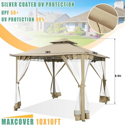 - 🌲【Sturdy & Stable Powder-Coated Metal Frame】Constructed with durable powder-coated steel, this 10×10 patio gazebo resists scratching, peeling, corrosion, and rust. Unlike other backyard gazebos, our frame can support up to 250 lbs. The pre-drilled pole base comes with stakes for wind resistance, ensuring a sturdy installation and stable setup.