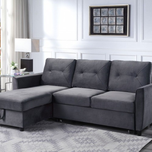 - The Hudson two-piece sectional couch is easy to assemble and can be arranged to meet your needs with its reversible chaise. The pull-out bed saves space and is easily ready for your guests to use. Its velvet upholstery and foam filled seats provide comfort, while its storage chaise provides the perfect place to put away blankets and pillows. The Hudson has functionality for your small space living in style!