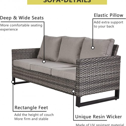 - 【Comfortable 4.5” Thick Cushions】This garden furniture set features deep and wide seats with 4-inch thick sponge-padded cushions.Offers good resilience, not easy to deform or slide, also protect your lumbar and offer a comfortable sitting experience,Water-repellent polyester cover with zipper,Easy to clean and keep.