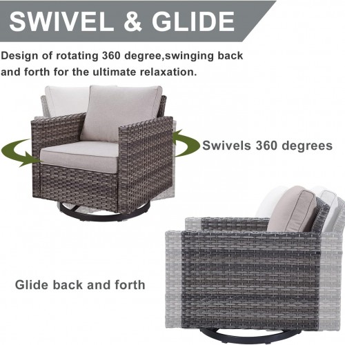 HUMMUH 7 Piece Patio Furniture with Fire Pit 30in 55,000 BTU,PE Wicker Outdoor Conversation Sets – Couch,Patio Swivel Chairs and Ottomans,Side Table for Porch,Garden,Backyard