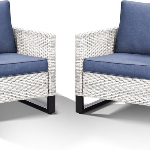 HUMMUH Outdoor Chairs PE Wicker Patio Dining Chairs Set of 2 Metal Frame Porch Chairs with 4 inch Seat Blue Cushions