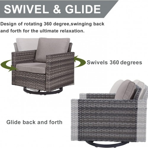 - 【Morden and Fashion】The popular grey wicker outdoor furniture set blends easily with garden or backyard arrangement and landscaping.Create an instant gathering spot on your porch or patio with this swivel chairs,You can enjoy delicious food or a drink with your family and guests.