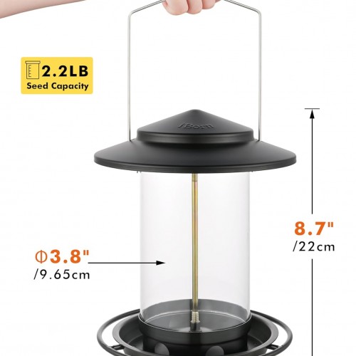 - 【2.2lb Large Capacity&Port Control Seeds Flow,Fill Once a Week】iBorn Large Capacity Bird Feeders For Outdoors Holds up to 2.2lb of seed,reduce the number of regular fills.With right size of each port control seeds flow into the tray.Reduce excess seeds waste and make it easier to fill once a week.