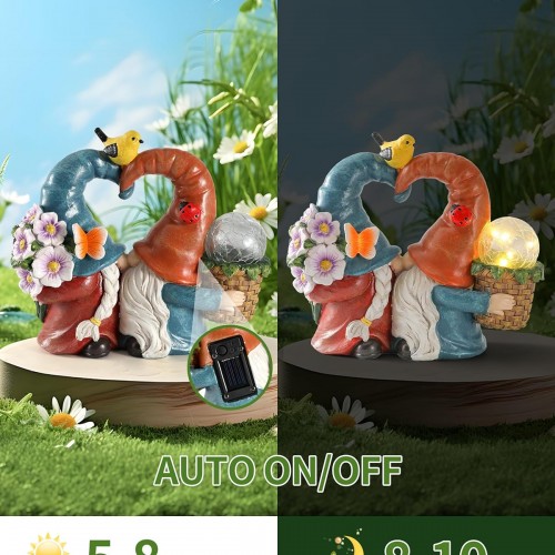 iStatue Solar-Powered 8.3” Spring Summer Kissing Gnomes Decorations for Home & Garden – Decorative Outdoor Lawn Ornaments and Statues Clearance (Loved Gnomes)