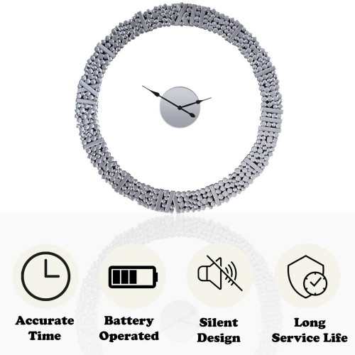 - Materials: Clock, Mirror, Faux Crystals, Composite Wood