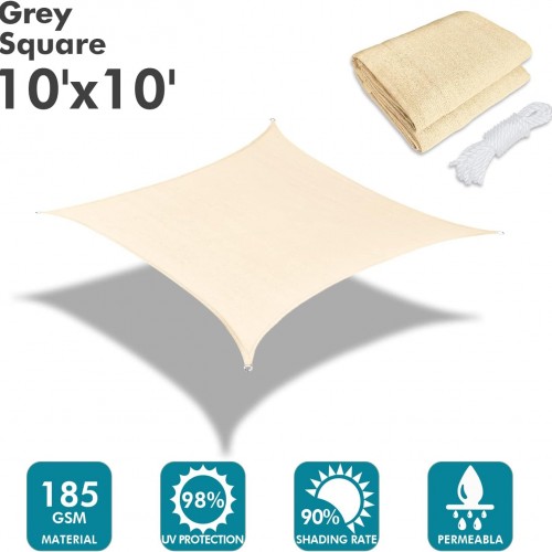KANAGAWA Sun Shade Sail 10’x10′ Cream Rectangle UV Block Canopy Awning Shelter Fabric Cloth Screen for Outdoor Patio Garden Backyard