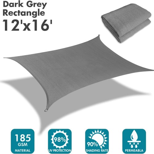 KANAGAWA Sun Shade Sail 12’x16′ Dark Gray Rectangle UV Block Canopy Awning Shelter Fabric Cloth Screen for Outdoor Patio Garden Backyard Activities