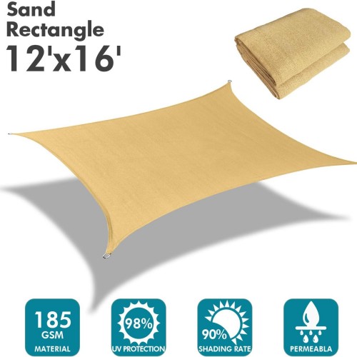 KANAGAWA Sun Shade Sail 12’x16′ Sand Rectangle UV Block Canopy Awning Shelter Fabric Cloth Screen for Outdoor Patio Garden Backyard Activities