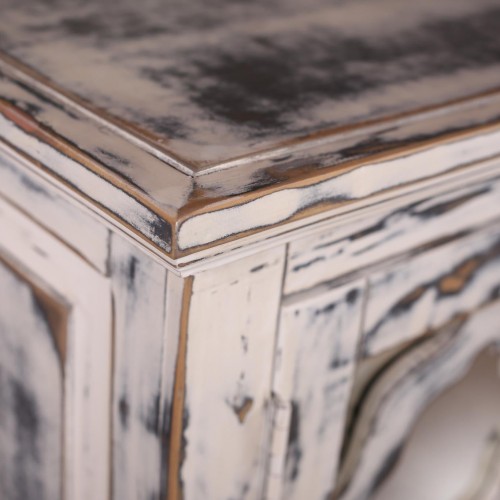 Keystone Collection: Distressed and rustic wood with geometric wood and mirror pattern on the door panels. Well built and blends in with your existing furniture.