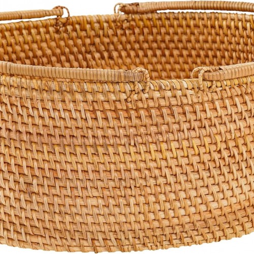 KINJOEK Wicker Woven Basket, 14 x 11 x 6.7 Inch Multipurpose Willow Basket with Handle Premium Linen Cotton Cloth Lining for Storage and Decoration, Natural