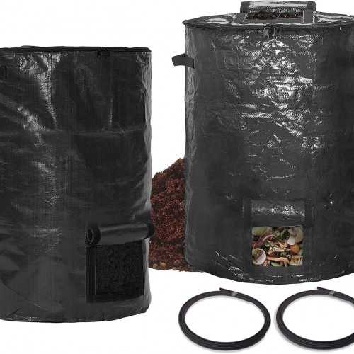 - [Easy to operate]: You can easily check the composting process and there are two openings at the top and bottom for taking soil. The easy-carry handle makes it easy to move the compost bag around the yard or garden. Note: When taking soil, try to avoid contact between the soil and the self-adhesive strips.