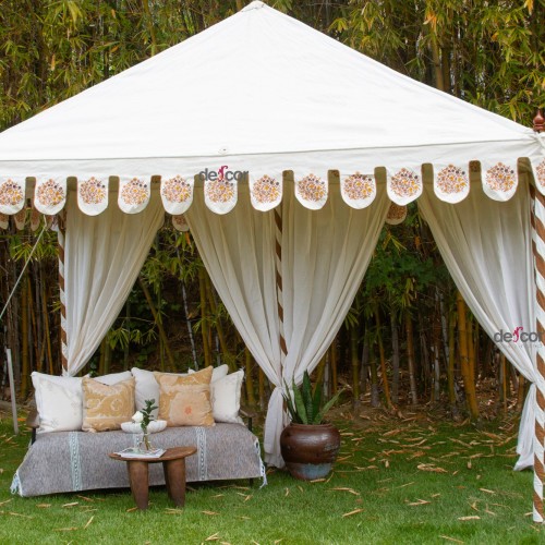 Bring a unique style to your outdoor space with this beautiful block-print garden canopy tent. Part of Indian culture and tradition, our chhatris are handcrafted from strong, waterproof canvas with a modern cubic shape and pitched roof.