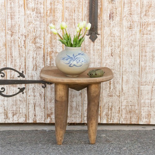 Senufo tribe, heavy stool hand-carved from one solid piece of wood. Features a concave top surface with a thick rounded edge seat that sits on four round cone shaped legs.