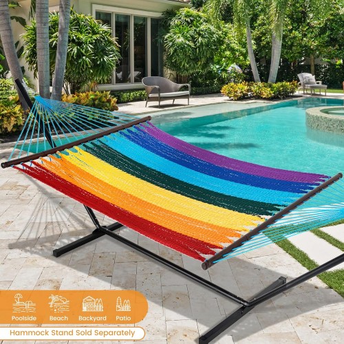 - HAMMOCK FOR OUTSIDE: Ideal for the patio, backyard, poolside, or beach, this hammock provides a wonderful experience whether you’re reading a book alone or enjoying the sunset with family and friends. There’s nothing better than sipping a beverage and gently swaying in the breeze
