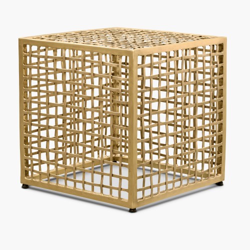 Our Lennox Side Table features a cube silhouette crafted with a delicate brass weave, making it the perfect accent table. Each selection is one-of-a-kind and slightly unique.