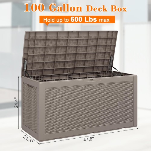 - Immense Storage Capacity: With a generous 100-gallon capacity, this outdoor storage box measures 47.8 ”L x 21.3 ”W x 24.4 ”H externally, this deck box offers perfect storage space for all your outdoor essentials.