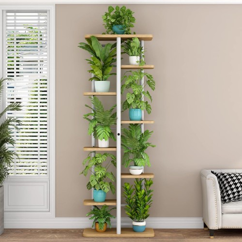 - High Quality Materials : The plant stand is made of 100% pure iron and MDF, smooth and burr-free, easy to maintain and wipe. The plant stand has 8 tiers of space and can hold up to 9 potted plants. The assembly size is: 16.93L*9.25W*53.54H in (43*23.5*136cm).