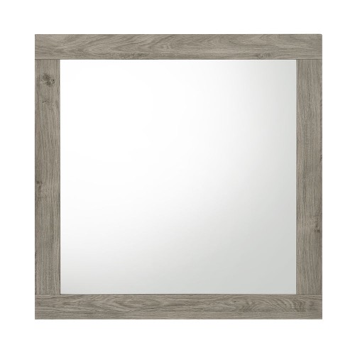 A fresh take on farmhouse design the Mari bedroom collection offers a sleek transitional design aesthetic. The bedroom set is finished in a stylish light gray with black accents that can appease anyone. The bed features a chevron-paneLED headboard and sits on black wooden legs. All the casegoods offer storage drawers with contrasting black metal pulls and sit on black wooden legs to match the bed. The dresser mirror is encased in a wooden frame to match the dresser.
