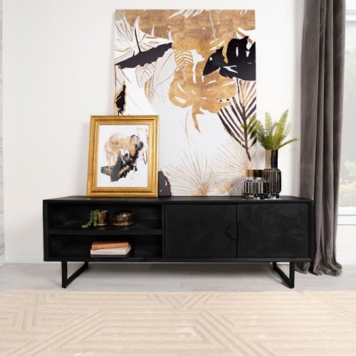Marsden – 2 Door Mango Wood TV Stand – Charcoal Black