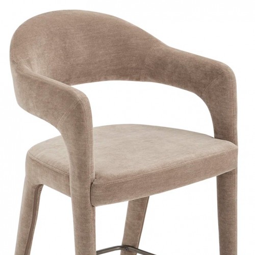 The Martens counter stool features an open barrel back and a continuous curve from leg to frame. Its fabric upholstery is complemented by generously padded seating, marrying comfort with a clean, uncluttered design. Armrests introduce a note of formality, while the airy back lends a touch of lightness and sophistication.