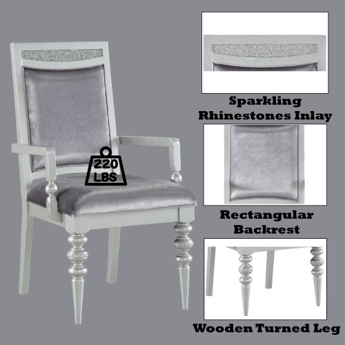 - Sophisticated Design: This arm chair features a high rectangular backrest with a wooden frame adorned with sparkling rhinestone inlays, adding elegance and glamour to any dining area.