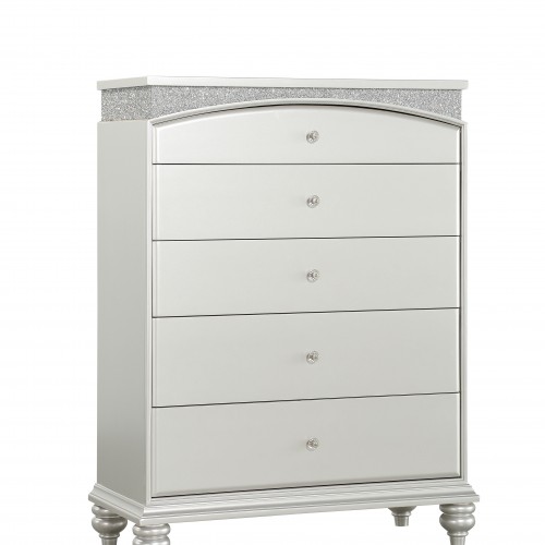 - Elegant Design: The Maverick Platinum Finish Dresser combines elegance and functionality, featuring nine spacious drawers ideal for ample storage. Its sophisticated arched top drawer adds a refined touch to its overall design.