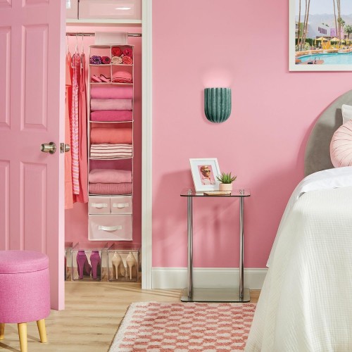mDesign Fabric Hanging Organizer – Over Closet Rod Storage – 7 Shelves/3 Removable Drawers for Baby Nursery or Bedroom Organization, Holds Clothes, Toys, Accessories, Jane Collection, Pink/White