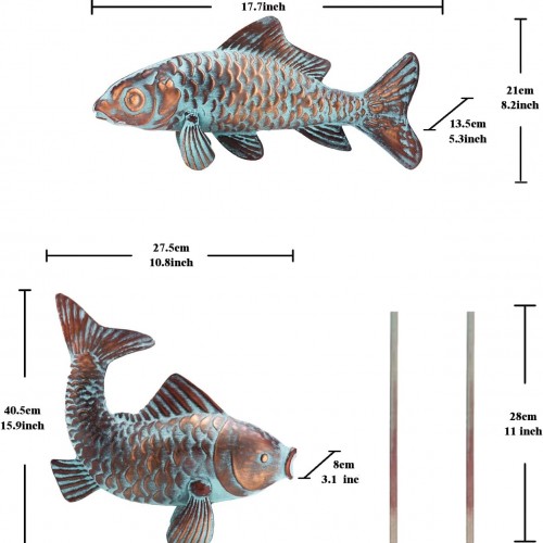 - Large Size Design Outdoor Statues: The fish figurines set size are 10.8×3.1×15.9 inch and 17.7×5.3×8.2 inch;There are 2 iron poles, each pole is 11 inch long. These exquisite koi fish statues outdoor are sure to make a grand statement.