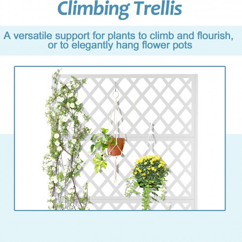 Metal Planter Box with Trellis & Wheels, Raised Garden Bed with Privacy Screen, Outdoor Standing Flower Beds with Drainage Hole for Climbing Plants, Vine, 47.2”L×15.7”W×70.9”H, White