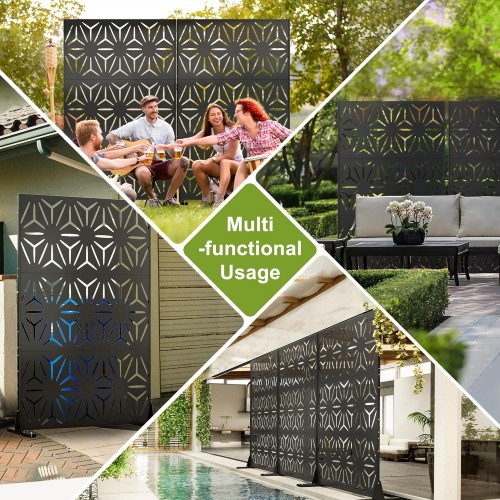 - Versatility: This metal privacy fence can serve multiple purposes. it’s perfect for enhancing privacy in backyards, porch, balconies. it can also serve as patio divider, outdoor room partition, a flower trellis, Wall decorations, living space dividers. it’s a practical and versatile choice for various outdoor and indoor applications.