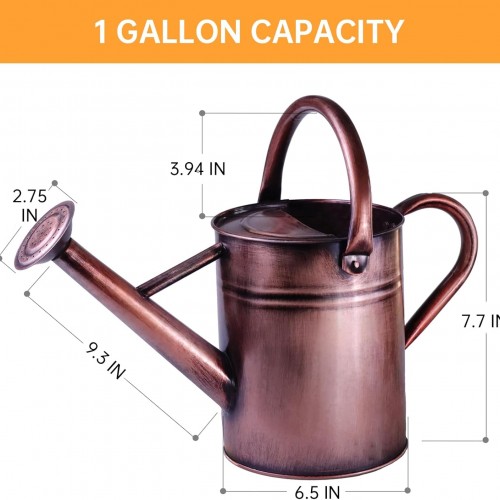 Metal Watering Can for Outdoor Plants, 1 Gallon Galvanized Steel Watering Can with Removable spout for Outdoor & Indoor Use, Perfect for Garden Flower, Houseplants, Copper