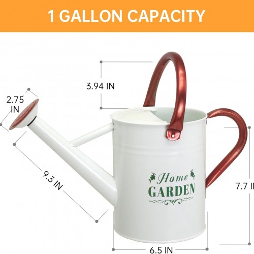 - 【Stylish Design 】The white watering cans with a stylish design is hand-forged and welded by professional craftsmen. You don’t need to hide this plant watering can because its elegant color and appearance makes it a perfect garden decoration. You can also use this decorative watering can as a planter to display flowers, the colorful botanticals will look outstanding in this cute watering can.