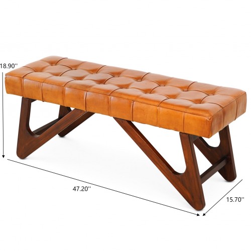 Mia – Bench With Buttons – Brown / Rustic