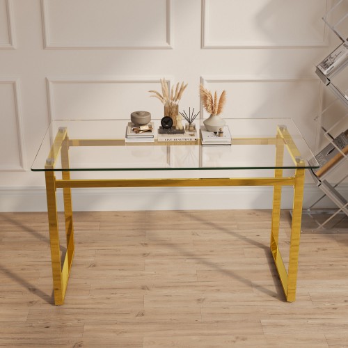 Modern Minimalist Rectangular Dining Table With Tempered Glass Top Gold