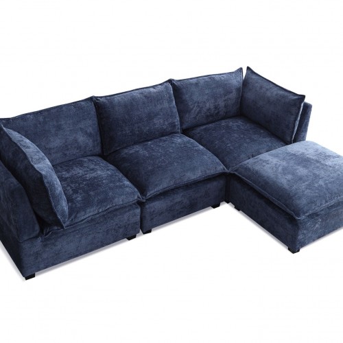 Modern Sectional L-Shape Sofa With Convertible Ottoman For Living Room – Blue