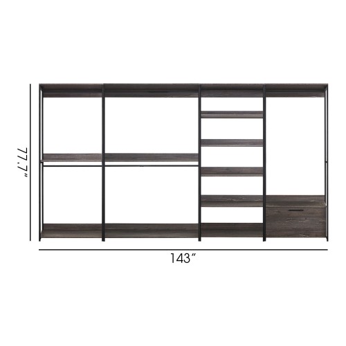 Monica – Wood Walk In Closet System Melamine 143″ Modular Storage – Rustic