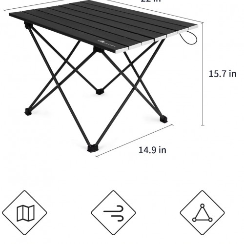 - Compact Design: Unfolded, the portable table measures 22″L x 15.9″W x 15.5.”H, and folds to 22″L x 4.7″W x 3.9″H. It comes with a carrying bag for easy transport by hand, in a backpack, or on a bike or motorcycle