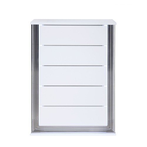 - Rich Chrome Accents: Elegant chrome accents enhance the nightstand’s overall aesthetic.