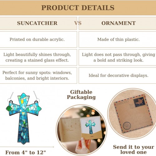 Mosaic Cross Acrylic Suncatcher Stained Glass Effect Window Car Hanging Christmas Ornament Indoor Outdoor Decor Garden Jesus Sun Catcher Panels for Family Christmas Jesus Gift for Women Mom Grandma