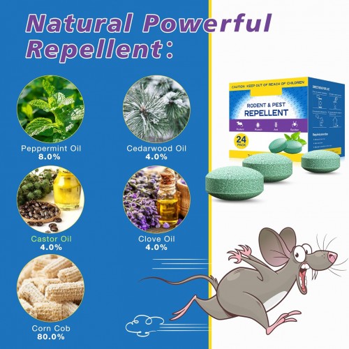 - 【Easy to Use】Simply tear off the sealed plastic packaging of our natural mouse repellent balls, place the mouse repellent balls in the included mesh bag, place or hang the rodent repellent in a confined space where mice like to stay, such as kitchen corners, garages, and barns are all good options for placement. The unpleasant smell will keep rodents away.