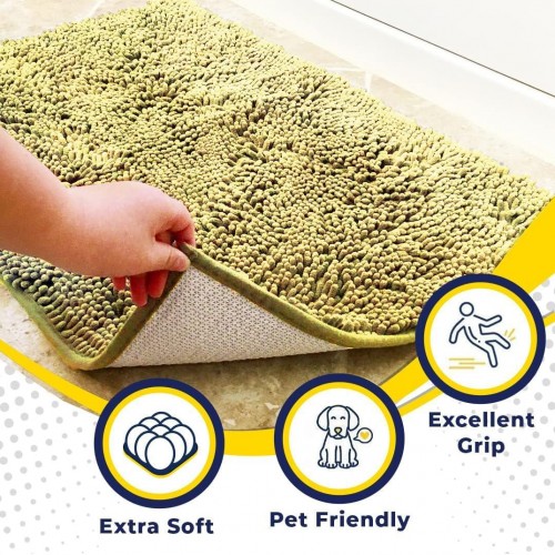 - [ ULTRA MOISTURE ABSORBENT ] Designed with a thick layer of plush 1-inch chenille that soaks up to 5X its weight for maximum water absorption ideal for trapping liquid from shower floors and wet spills from pets.