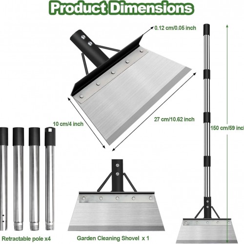 Multifunctional Garden Cleaning Shovel, Heavy Duty Steel Flat Shovel with 59″ Adjustable Handle, Snow Ice Scraper, Outdoor Spade Tool for Weeding, Lawn Edging, Digging, Ice Removal