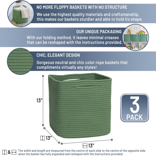 - No More Wrinkly Floppy Woven Baskets: Prepare to have your socks knocked off (and then neatly organized), when you take a peek at our woven rope basket set. No more ‘permanently’ creased up, floppy storage basket here. Thanks to our unique folding method and quality rope, shaping is easy with the instructions provided!