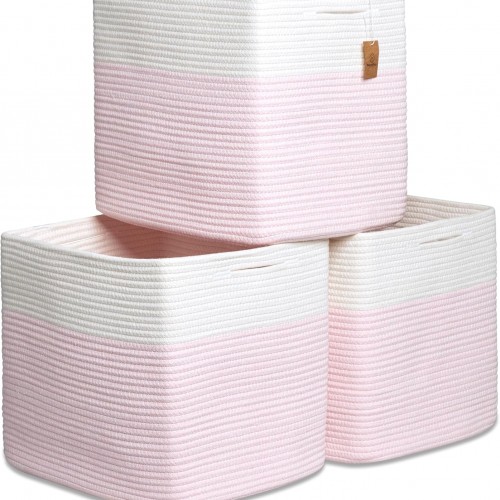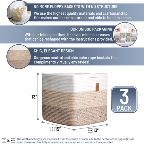 NaturalCozy 13x15x13 Kallax Storage Cubes Bins, 3 Pack | Cotton Rope Cube Storage Bin Woven Baskets for Organizing | Kallax Insert Storage Baskets for Shelves Organizer, Kids Toy, Closet Baby Nursery